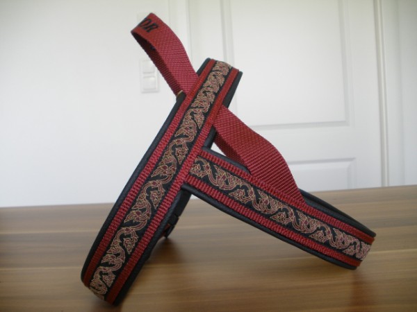 Geschirr - mit Borte Ranken weinrot, Gurtband weinrot, Leder schwarz
