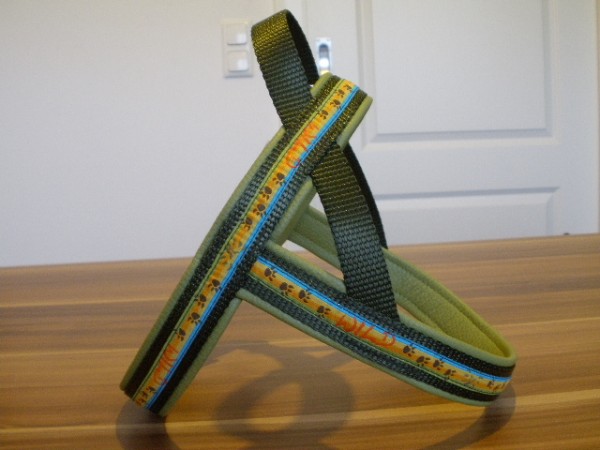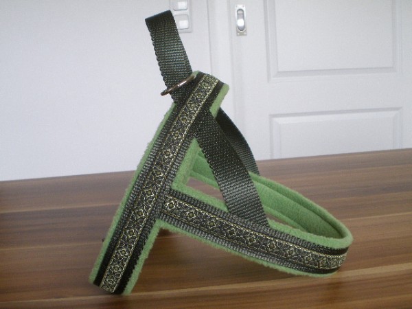 Geschirr - mit Borte Waldelf oliv, Gurtband oliv, Fleece apfelgrün