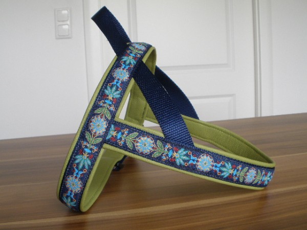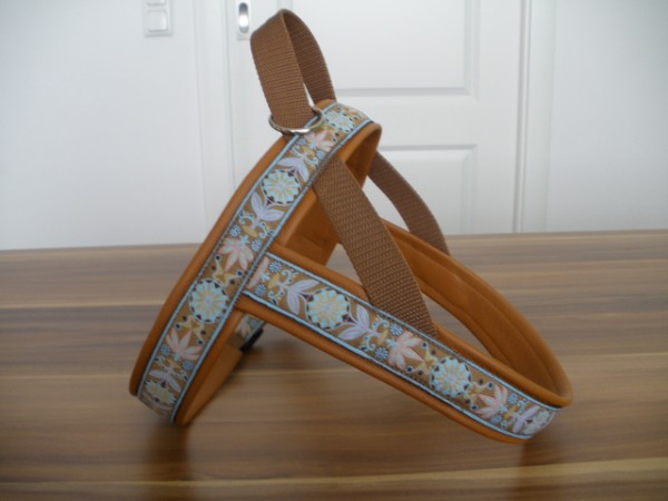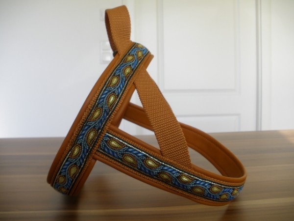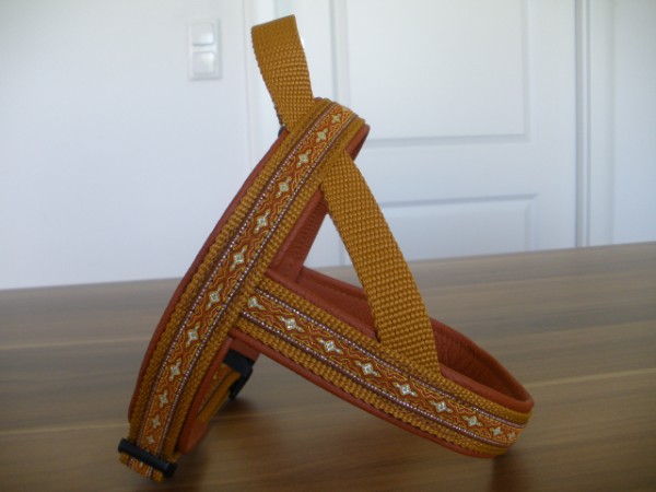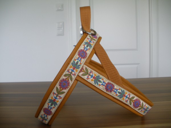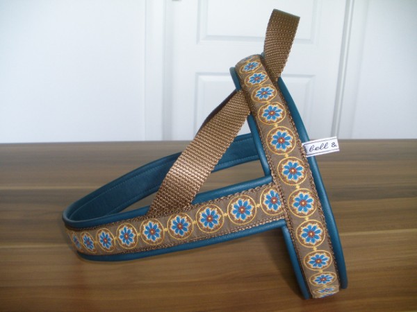 Geschirr - mit Borte Fleur senf, Gurtband honig, Leder petrol