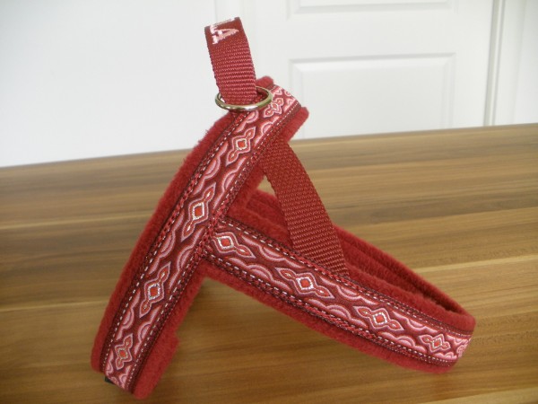 Geschirr - mit Borte Lava weinrot/rosa, Gurtband weinrot, Fleece weinrot