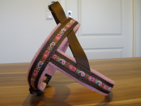 Geschirr - mit Borte Paisley schoko, Gurtband schoko, Fleece rosa