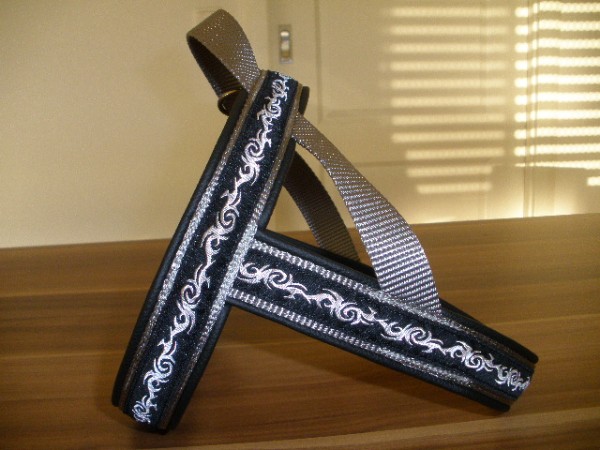 Geschirr - mit Borte Tribal, Gurtband silber, Leder schwarz