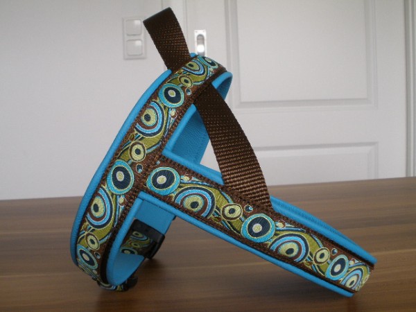 Geschirr - Borte Circles braun, Gurtband schoko, Fleece türkis