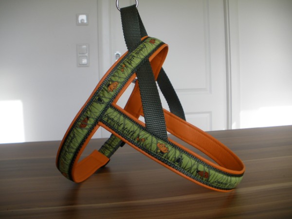Geschirr - mit Borte ground staff, Gurtband oliv, Leder orange
