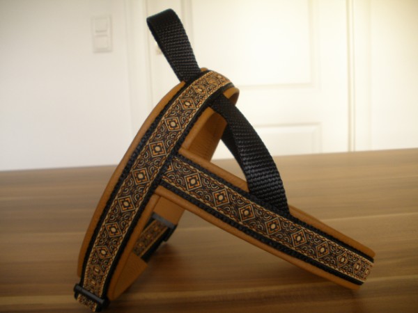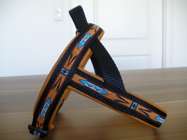 Geschirr - mit Borte Aztek schmal, Gurtband schwarz, Leder honig dunkel