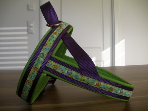 Geschirr - Borte Love & Peace, Gurtband lila, Leder kiwi