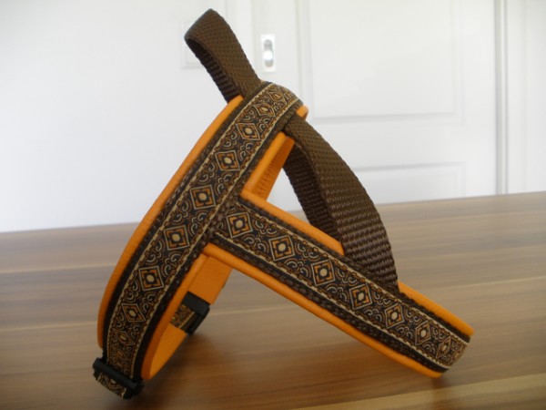 Geschirr - Borte Waldelf kupfer, Gurtband schoko, Leder zartorange