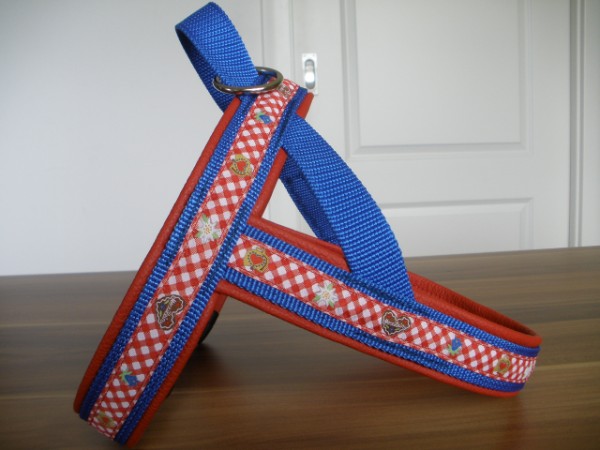 Geschirr - Borte Herzilien, Gurtband mittelblau, Leder rot