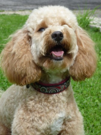 NIKA mit Geschirr - Borte Retro-Circles grün, Gurtband schoko, Leder türkis (Geschirr Größe M: 46 €)